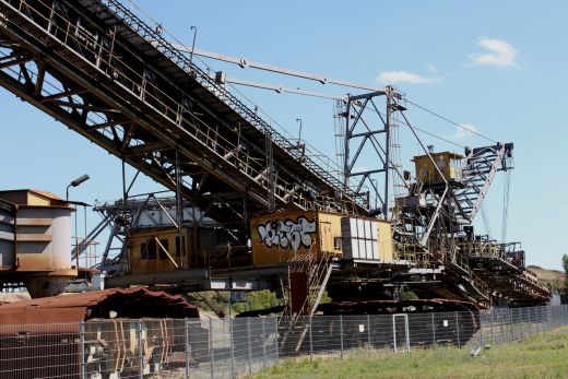 Die größten und gewaltigsten Maschinen in der Ausstellung kommen aus dem ehemaligen Tagebau Espenhain. Ein Schaufelradbagger und ein Absetzer sind die Highlights und ein beliebtes Fotomotiv.