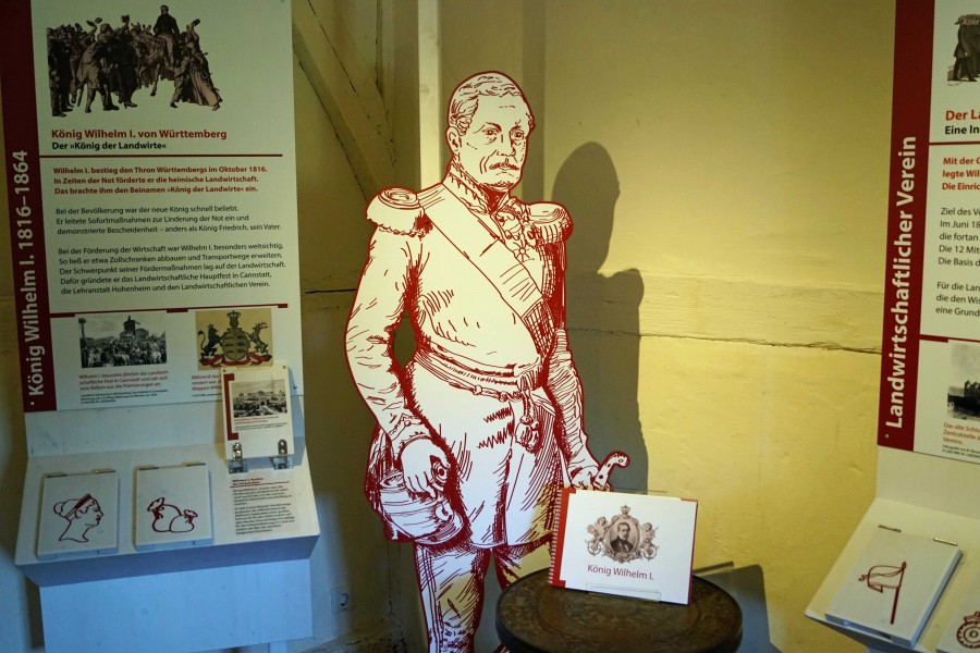 Im Jahr 1817 gründete sich der Landwirtschaftliche Verein, der seit der Gründung jedes Jahr ein Fest in Bad Cannstatt feiert. Der Museumschef erklärte weiter, dass der Monarch im Ausland Rinder und Merinoschafe einkaufen ließ. „Er wollte König der Landwirte sein.“ Ein Meilenstein gelang König Wilhelm I. mit der Gründung der ersten staatlichen Forschungs- und Förderanstalt für Landwirtschaft. Der Pädagoge Johann Nepomuk von Schwerz wurde zum ersten Leiter des Lehrbetriebs. „Daraus entstand 1819 die Hohenheimer Ackergerätefabrik.“ Bald kamen aus nah und fern Gesandte und Hoheiten nach Hohenheim.